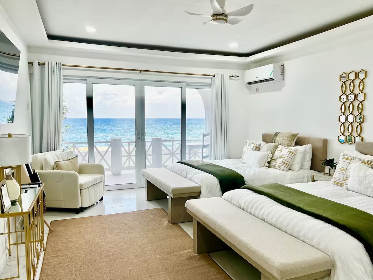 Sunset Vista is located within Little Bay Country Club, an upscale, beachfront community in Negril. The gated community sits on a peninsula that is surrounded by the Caribbean Sea on both sides and features a private beach, infinity pool, clubhouse, tennis courts, basketball, and 24-hour security. Sunset Vista sleeps 4 very comfortably and up to 6 (4 adults max). The home is fully solar powered with wifi and a/c throughout and is perfect for couples or families. This relaxing 2 Bedroom and 2 an