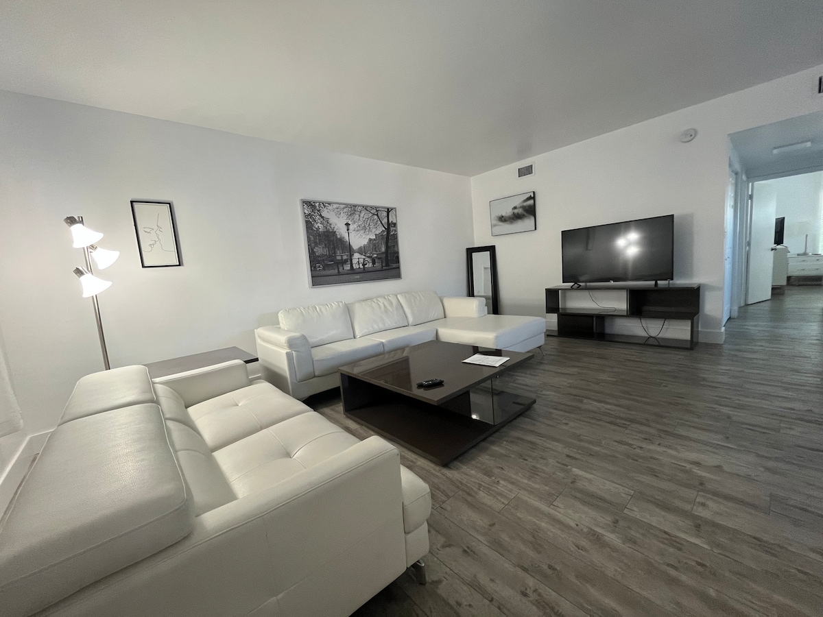 Kick back and relax in this calm, stylish space. completely renovated in August 2021. Beautiful luxury shower, wood floors and beautiful chef kitchen. Designed with quartz counters and new stainless appliances. Glass and oceanic atmosphere. Stocked with everything you need for a vacation- long or short. 4 minutes & $6 Uber ride from the hard rock hotel and casino entertainment center, Where world famous concerts and events take place. 10 minutes from the beach and the Fort Lauderdale airport.