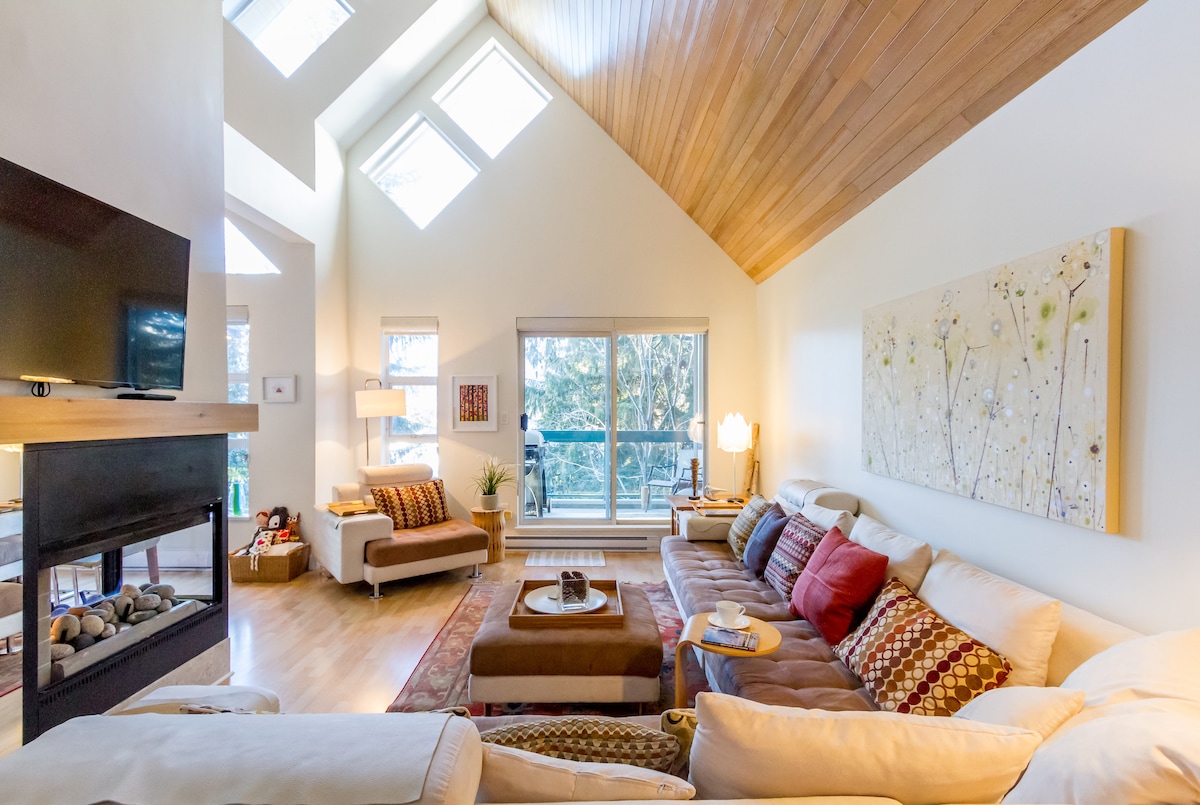 A cozy, mid-century inspired mountain retreat in Whistler, BC. PERKS OF THE LOCATION: ◦ 3 min walk from new gondola ◦ 5 min drive to Whistler Village ◦ Steps from some of the best shops/restaurants in Whistler ◦ Easy access to the highway PERKS OF THE SPACE: ◦ A trendy, cozy, midcentury modern interior ◦ Luxury duvet and pillows ◦ Electric fireplace ◦ High quality furnishings in a newly renovated space ◦ Unique vintage pieces throughout ◦ Record player ◦ Lots of natural light