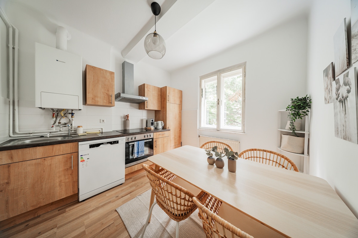 Modern comfort in a peaceful location. Welcome to your home away from home! Enjoy a dreamy bathroom, a private balcony, a king-sized bed, and a comfy sofa bed. Fully equipped with everything you need, it’s perfect for relaxing after exploring the city. Our lovingly renovated apartment combines modern style with cozy comfort. Located in a quiet neighborhood, it’s just a short walk to the metro and only 10 minutes from the city center. We look forward to hosting you!