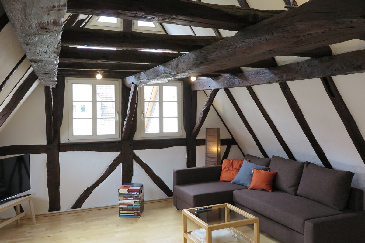 Our newly renovated, very specious loft-style flat is centrally located in a beautiful old winery in the heart of Rüdesheim. All attractions are just around the corner. In only a few minutes you can reach the main attractions like the cable car station, the famous "Drosselgasse" or start your hike up to the Niederwald monument. Even thou centrally located the flat offers privacy and tranquility. All you need for a relaxing stay in Rüdesheim.