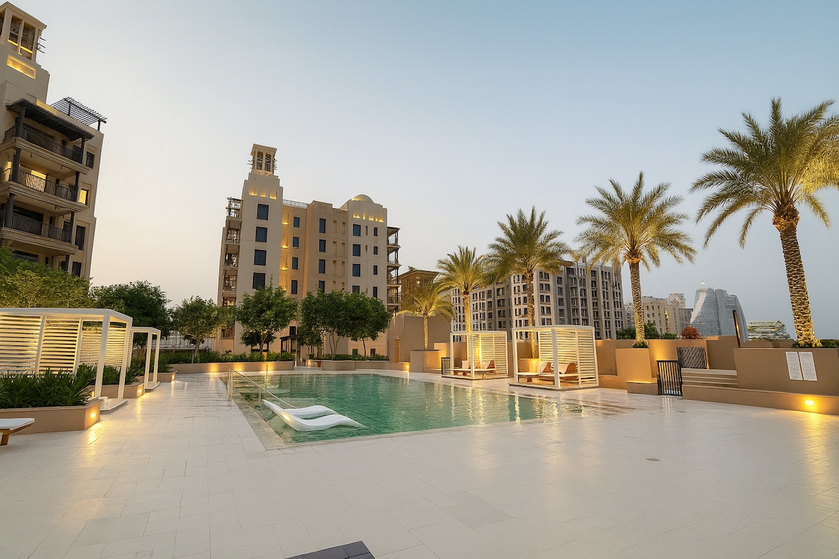 Luxury 2BR apartment in Madinat Jumeirah Living, Jadeel 3, just steps from the iconic Burj Al Arab. next tot he beaches, Located on the ground floor with a spacious terrace and direct pool access. Includes maid's room, 180 sqm of space, and a prime view. Only 5 minutes from Mall of the Emirates for top shopping and entertainment. Ideal for a stylish, convenient Dubai stay. Brand new project has been delivered in 2025 by Meraas called Madinat Jumeirah Living .