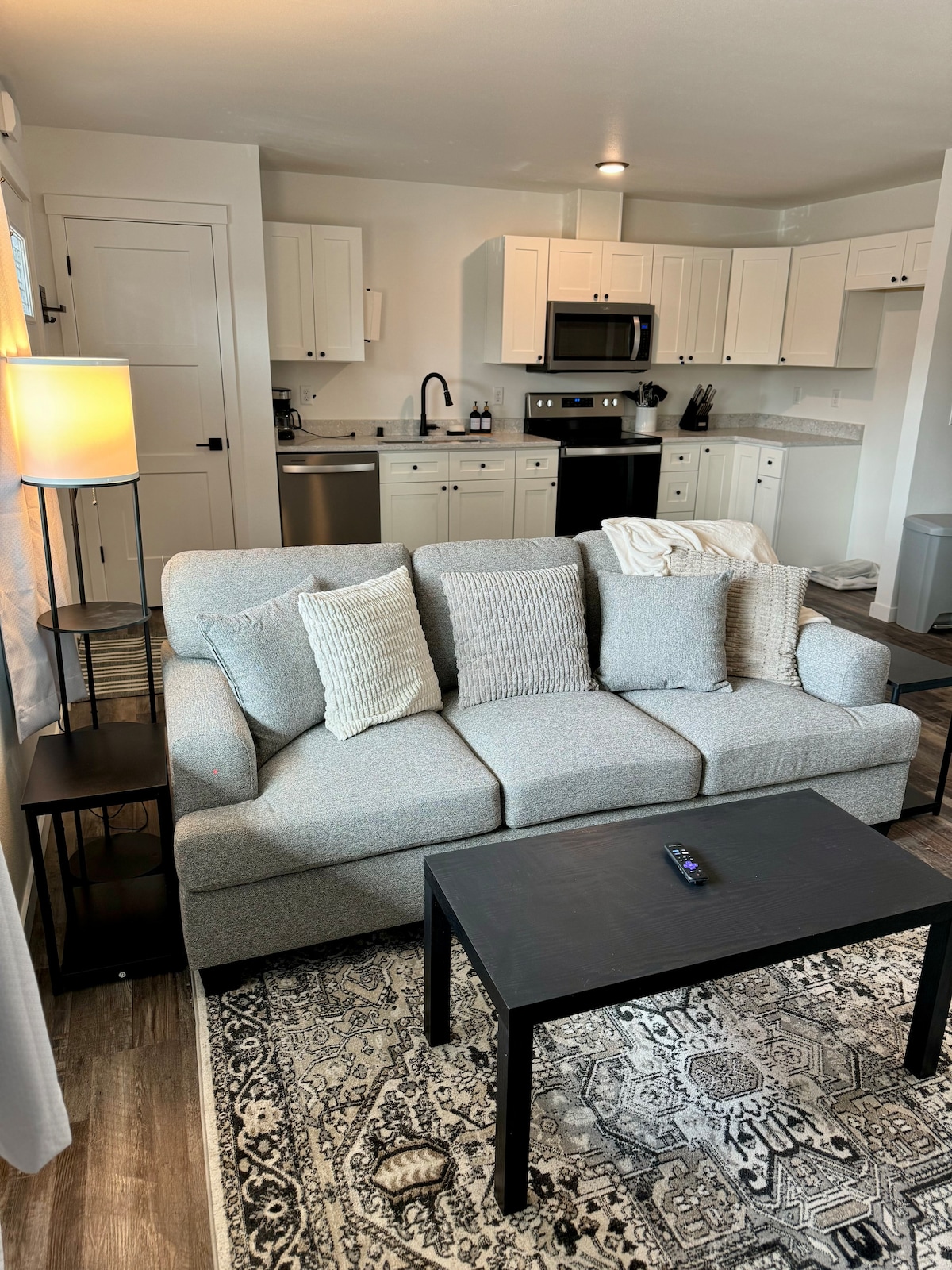 New Build, May 2022. Centrally located. Close to shopping and hiking trails. Located in-between Palmer & Wasilla. 1 mile from Colony High School. This listing has a queen bed, & double futon couch. We can add an air mattress if needed and provide a pack-&-play for small children. Fully equipped kitchen and a washer/dryer in unit. Brandy and I are readily available for dinner suggestions, hiking trails, tourist destinations, etc. We love this town and Alaska and want you to love it too.