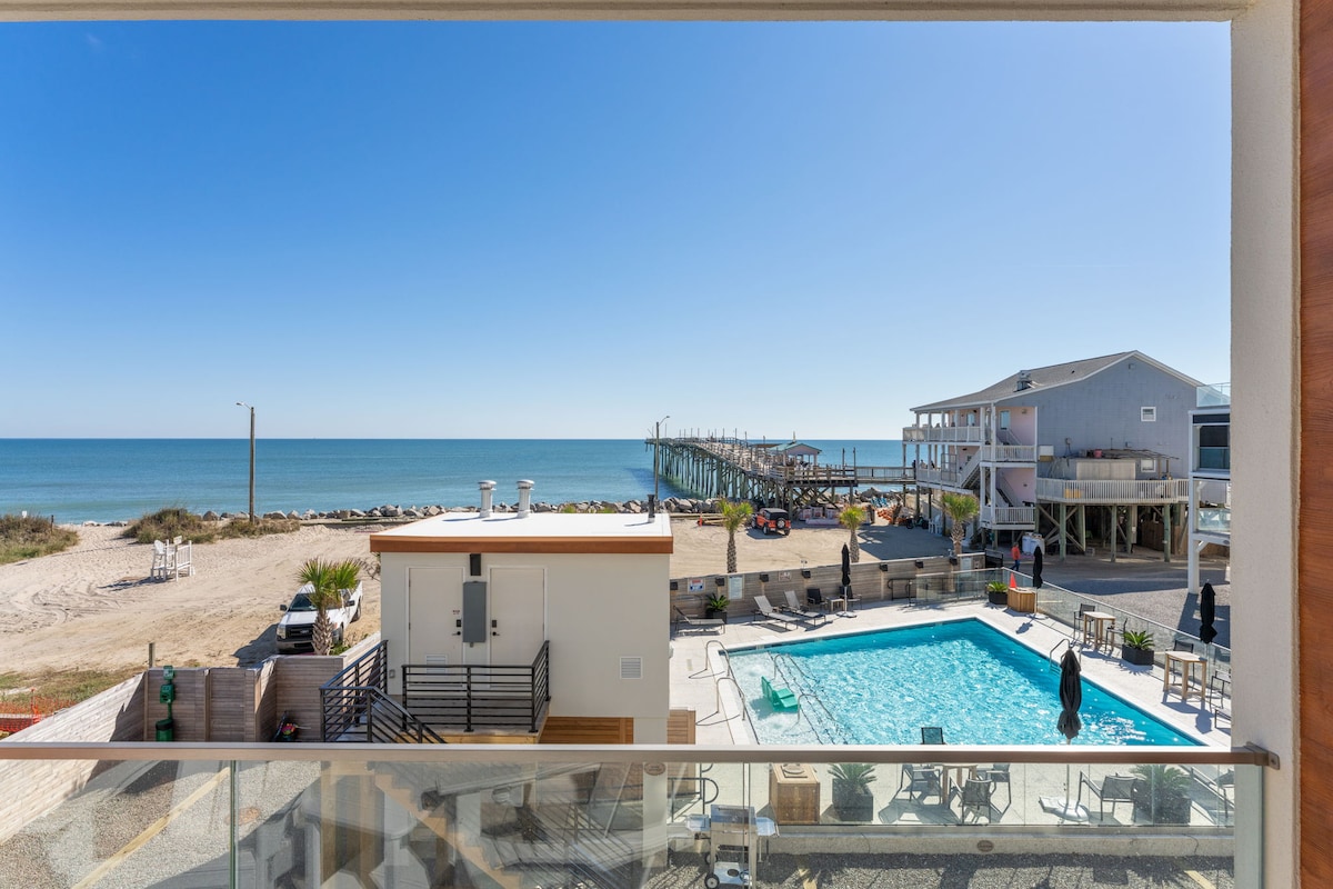 Come stay awhile at the New Kure Lighthouse Inn! Completely renovated, featuring mid-century modern design, luxury apartments with breathtaking oceanfront views! Enjoy coffee on your patio overlooking the beach, or cozy up to our firepit with a glass of wine in the evening. Accommodates up to 4 guests: 2 Queen-sized beds, crisp cotton linens and plush fluffy towels! Small kitchenette with microwave, small refrigerator, and a Keurig coffee maker. Come relax and unwind at the beach!