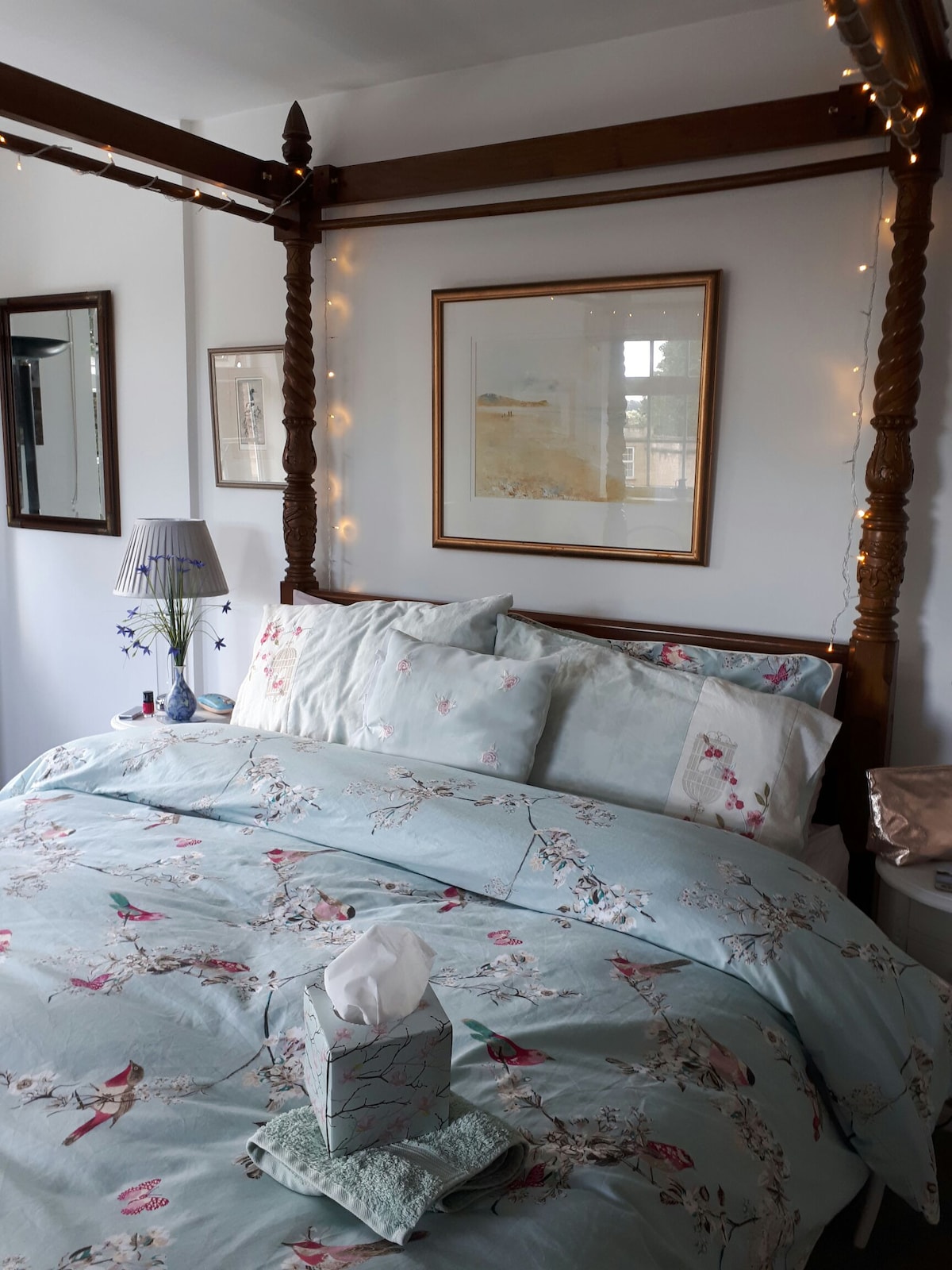 A stylishly decorated, light and spacious house. In your room, that overlooks the private garden, there is a comfortable four poster king sized bed, a 2 seater sofa, a desk, en-suite shower room, flat screen TV/ DVD and hair dryer. Tea and coffee making facilities. Fresh milk is available. Manderley is a 15 mins walk to the historic city centre where you will find the Cathedral and interesting shops. A 40 minute drive to beautiful beaches. Children are welcome at a small additional charge.