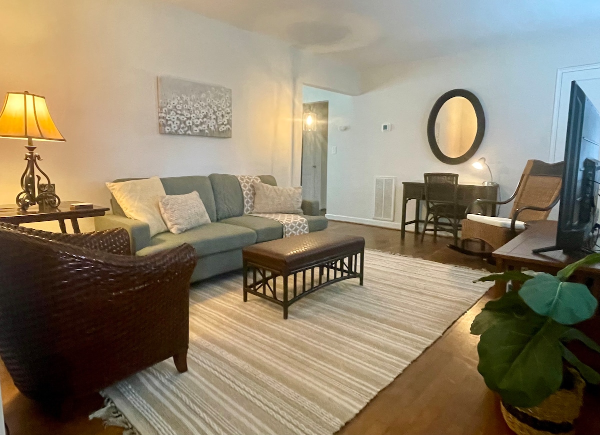 Short proximity to just about everything: universities, hospitals, sporting venues, event venues. A wonderful Science Center is right around the corner. Nature lovers will appreciate being in walking distance of Guilford Military National Park with tons of walking and biking trails. Stop for an ice cream cone along the way. Lots of dining and shopping options within a 3 minute drive like Trader Joes! Fully stocked kitchen, top quality mattresses, 54" smart TV and all the comforts of home.