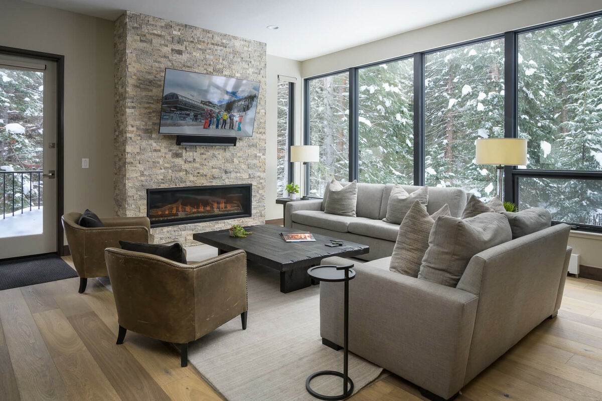 单卧室公寓,滑雪进出,热水浴缸,火坑