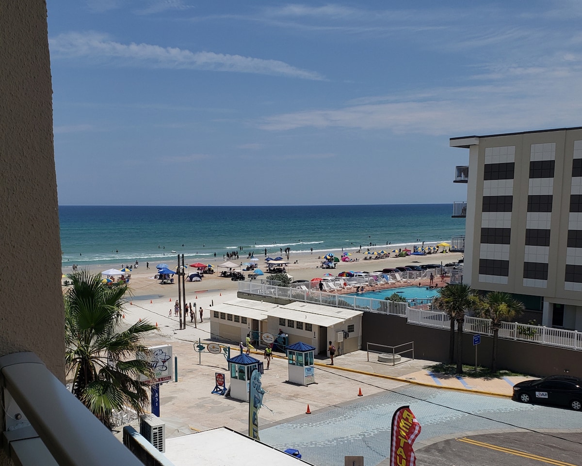 Welcome to our studio! It is located a few steps from the sand and in the heart of the World's Most Famous Beach, Daytona Beach! Our building is right on the ocean! Our studio offers the best beachfront location imaginable! Whether you're interested in learning to surf or spending time with the kids at the beach, you will have a fantastic time. Staying at our studio, you will be right in the center of all the fun. Included: √ Free Wi-Fi √ Free Parking √ Smart TV √ Self Check-In