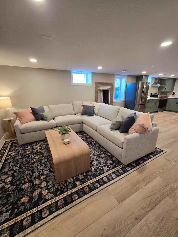 Relax in style at our spacious lower unit in Maple Lake! Enjoy a massive 75″ Smart TV, plush couches, and a roomy dining area perfect for gathering. The fully stocked kitchen comes with all cooking essentials plus complimentary water and snacks. Drift off on 12″ memory foam beds and pillows. Private washer and dryer for your convivence, Nestled in a quiet neighborhood, close to parks and surrounded by Minnesota’s beautiful lakes, this retreat blends comfort, convenience, and relaxation!