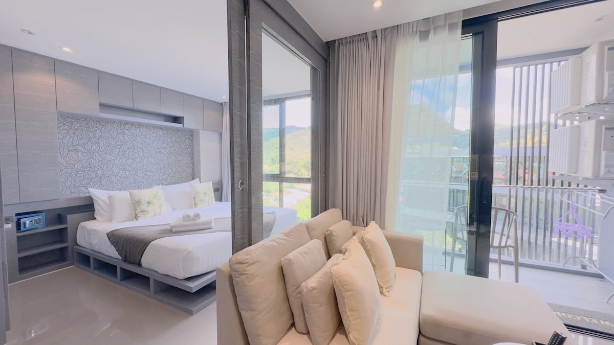 The sunset glow and gentle sea breeze from your balcony will leave you inspired 🌅 Located on the top 6th floor of Wyndham La Vita Phuket - this studio is perfect for those who value beauty, calm, and style. A king-size bed (230×200), full kitchen, and workspace by the window make it ideal for both rest and remote work. The balcony overlooks the pool with a partial sea view. Rawai Beach is a 5-minute walk, Nai Harn Beach is 7 minutes by bike.