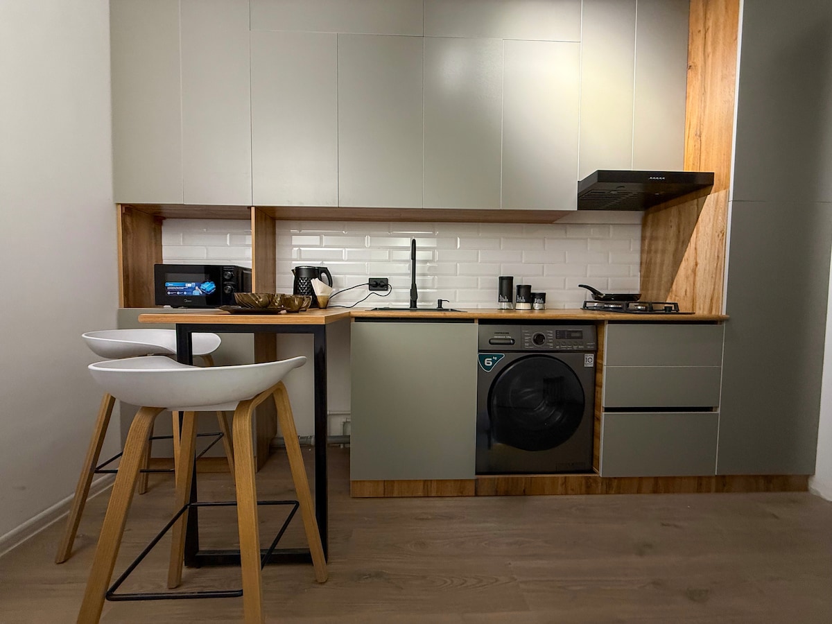 Please note: the apartment is not available for photo or video shoots. Welcome to a cozy and stylish 30 m² studio, once the art workshop of painter Gayrat Baymatov. The apartment is located in a truly unique building, where artists still live and create on every floor. Within just a 5-minute walk you’ll find: • Buyuk Ipak Yuli Metro Station • A local bazaar with fresh fruits, vegetables, and family-run cafés • “Belissimo” pizzeria • “Breadly” serving delicious breakfasts