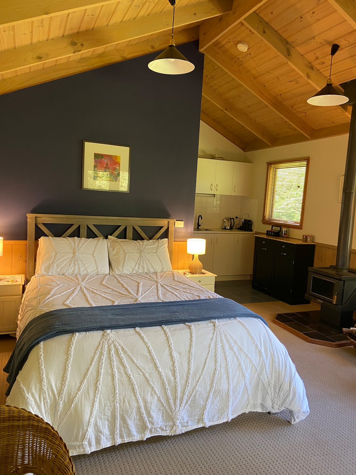 This spacious and modern 2 bedroom suite boasts breathtaking views of the surrounding mountains and rolling hills, creating a tranquil and serene atmosphere for guests to enjoy. The suite is equipped with all the modern amenities, including two bedrooms - both with queen sized beds, full bathroom, kitchenette, lounge area, and outdoor deck area. When you book our guest suite the price is for both rooms (2, 3 or 4 people max).