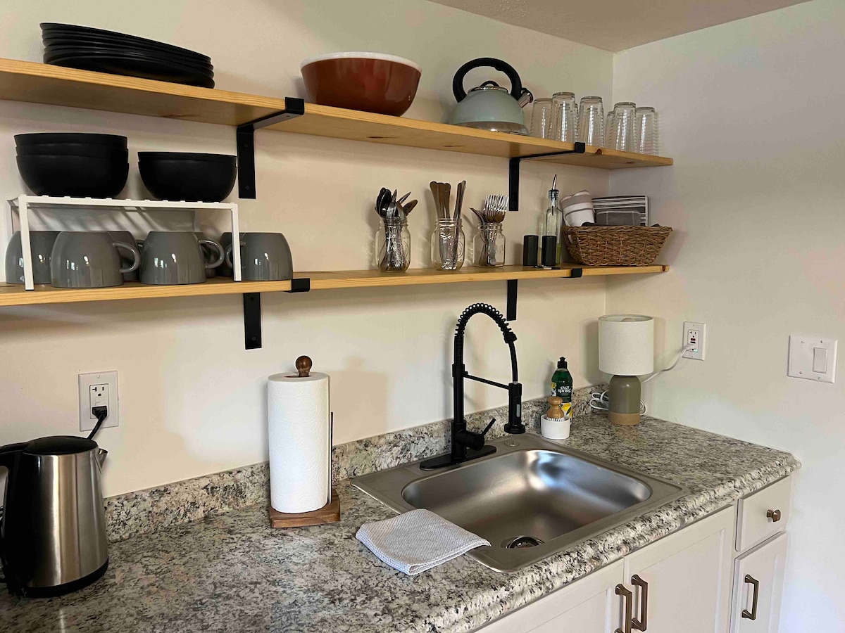 安静的1卧客用套房,配备热水浴缸!