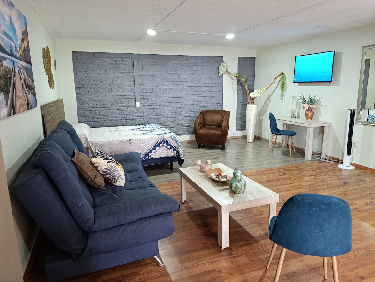 Es un loft donde podrás descansar y relajarte con toda privacidad y todas las amenidades (Wi Fi 5G, luces leds, agua caliente, agua potable, regadera enorme tipo lluvia, secador pelo, jarra eléctrica, refrigerador, cama super comoda queensize con sábanas suaves, sofá cama, espejo de cuerpo entero, smarttv, comedor, escritorio trabajo, estacionamiento con portón eléctrico para que que sea tu estancia todo un éxito.