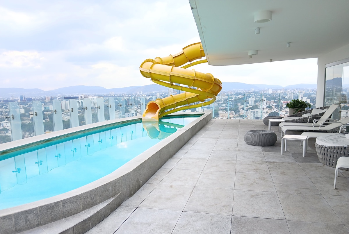 Very spacious home with two bedrooms (King and Queen), AC, smart lights, electric curtains, high speed internet Wi-Fi, Infinity pool, lounge area, roof garden and everything you need for a day or many months stay. The tower has a shopping area, top-notch restaurants, and it is walking distance from Landmark, Andares and Acueducto malls and The Colomos forest. We sanitize and clean the entire condo. Please read the rules before you reserve.