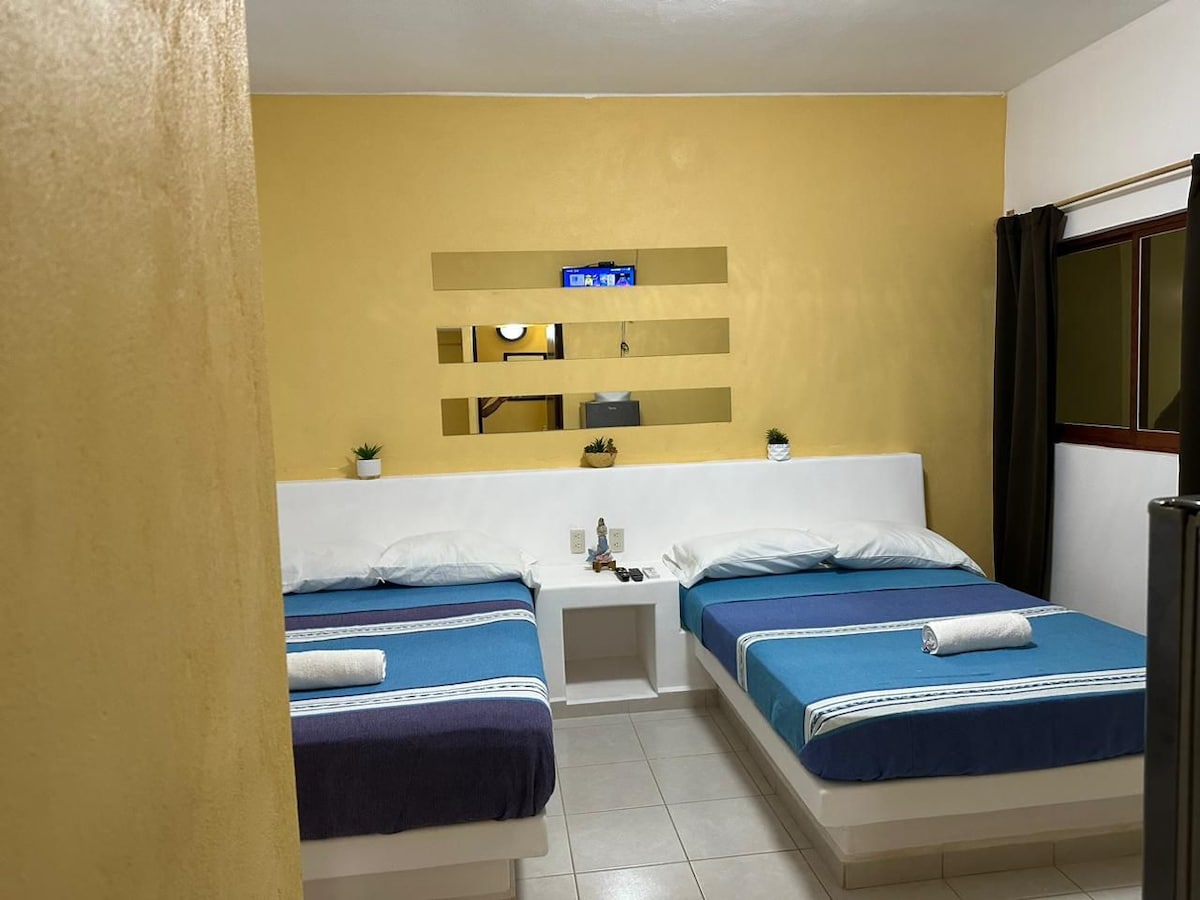 The space is a large room with two queen size beds, a dresser with a mirror and private bathroom with a spacious dressing room. The rooms are in quiet zone, 15 minutes walking to Zihuatanejo's dowtown and the beach. At the entrance there is a restaurant, that also has a open space.