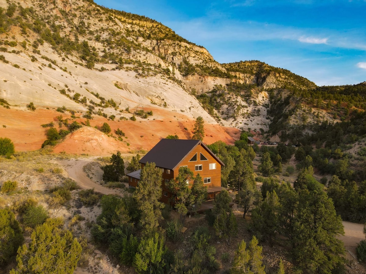 Howdy partner! Live the cowboy dream at our rustic A-frame log cabin between Zion & Bryce Canyon National Parks! Sleeps 8 🤠🌵 Enjoy world class hiking, biking, horseback riding, and cliff jumping within driving distance! Then come home and relax at the cabin. Horses to greet across the street, stargazing at night, and all the sounds and smells of the frontier. Authentic country experience with modern conveniences: Fiber internet. Clean, full bathrooms. Multiple smart TVs.