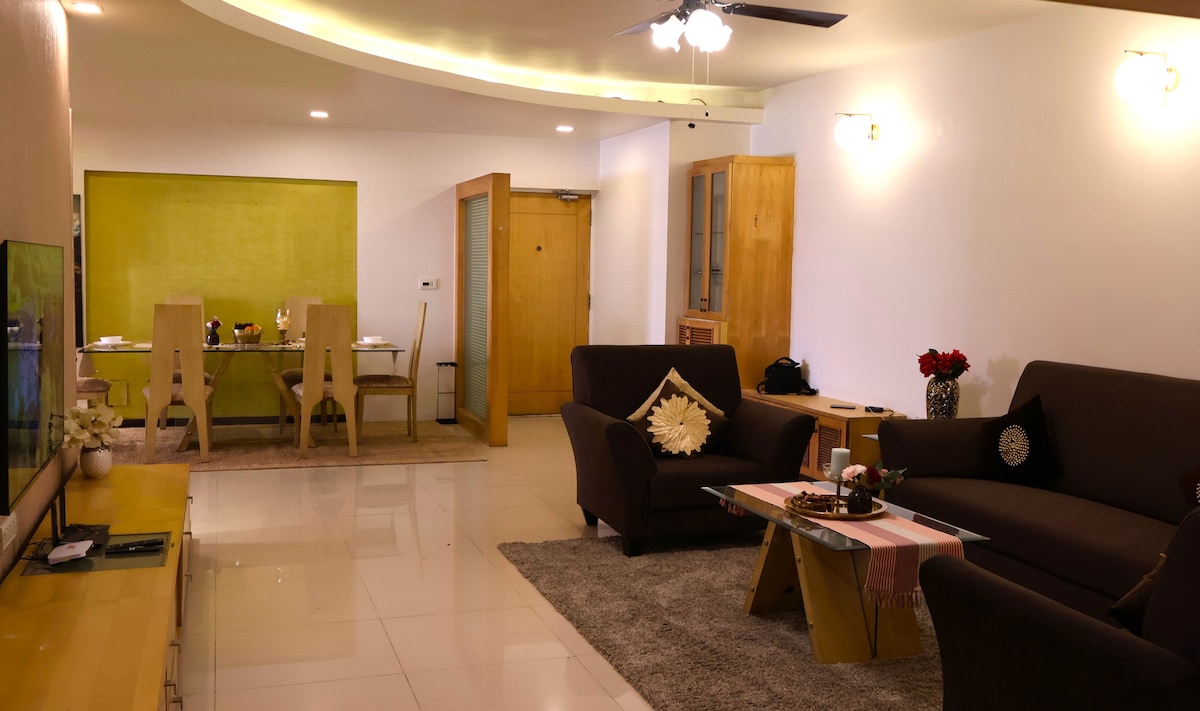 We would like to provide our guests with an experience of living in "A home away from home". This is a 2 BHK apartment located in a secure, well-maintained residential complex catering to Curious Tourist and Savvy Business Executive. We are located 35 kms. from Bangalore International Airport and Cubbon Park Metro Station is a 5 minutes walking distance. On arrival, the key will be handed over to our guests and they can arrive and leave as they please, during their stay.