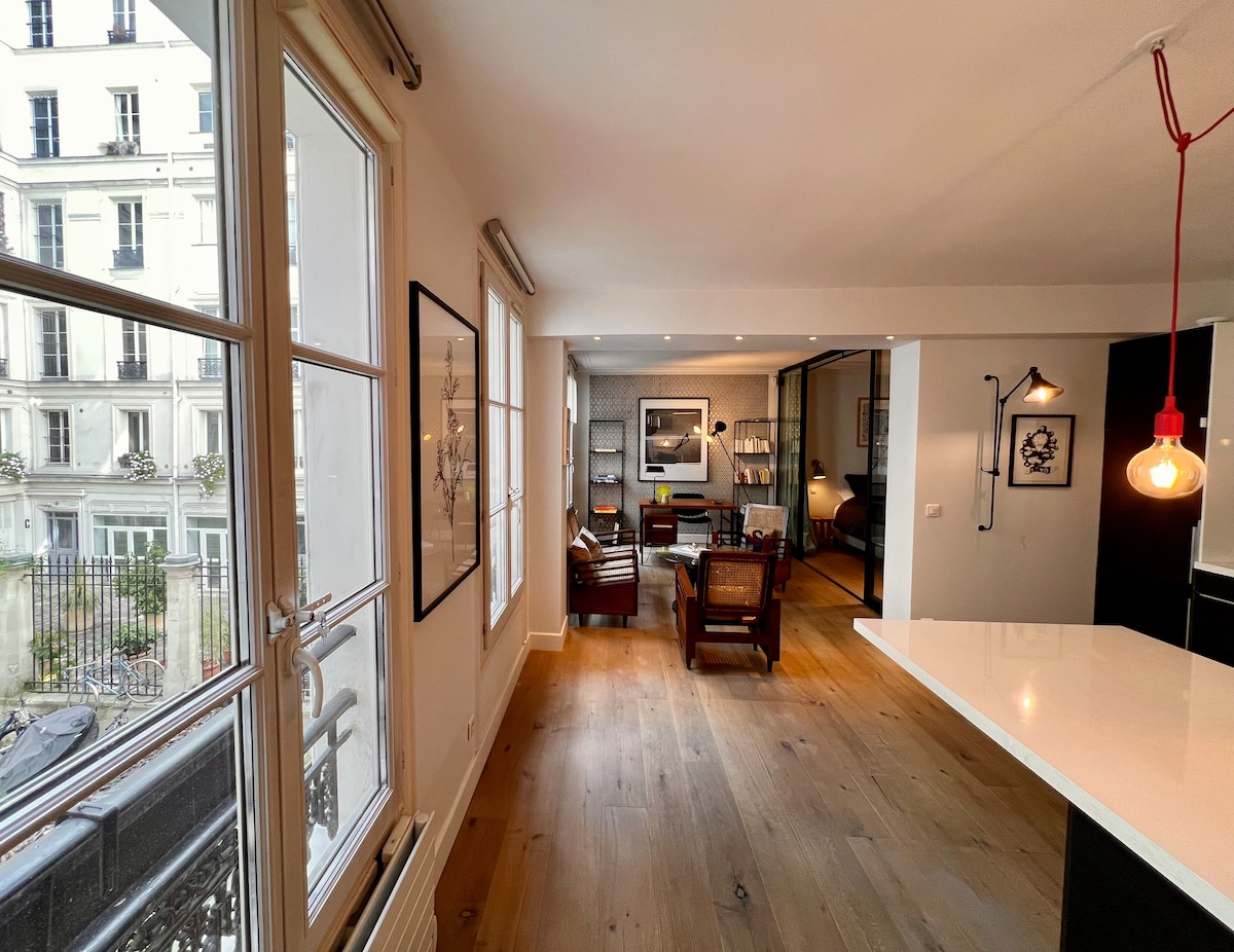 Appartement typiquement parisien entièrement rénové, idéalement situé en plein centre de Paris. Très lumineux et très calme, il offre un cadre élégant et confortable pour votre séjour. Vous profiterez de la climatisation (rare à Paris) et d’une grande salle de douche. Avec ses poutres apparentes, l’appartement conserve tout le charme authentique du Paris d’autrefois. Son emplacement exceptionnel en plein cœur de Paris est sans aucun doute son plus grand atout. Vous pourrez visiter Paris à pied