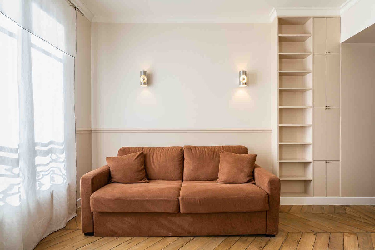 Appartement climatisée de 60 m2 à l’agencement haut de gamme dans l’hyper centre de Paris quartier historique de Montorgueil, célèbre pour ses commerces de bouches, ses petits bistrots et restos. L’appartement se situe au 1 er étage d’un immeuble dans une rue très calme. Il a été refait à neuf en 2023 par une célèbre architecte et donc très bien agencé avec des équipements de très haut standing. Vous y serez comme dans une suite d’hôtel avec le charme en plus, d’un vrai logement parisien.