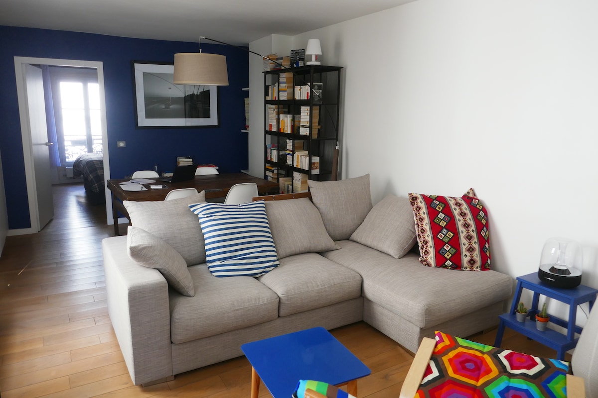 Our apartment is a former sewing workshop in an 18th century building in the heart of Paris, a stone's throw from Montorgeuil and Les Halles. It is on the 2nd floor (there is no elevator). Polters 3.30m high under the ceiling and original stones on a wall make the charm of the place and its brightness. The decoration is above all design and trendy mixed with a few touches of the old.
