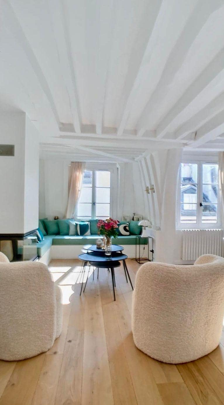 Détendez-vous dans cet appartement d’architecte lumineux et élégant de 52m2 qui a été entièrement refait à neuf en juillet 2023 : ultra moderne grâce à tout son matériel dernière génération tel que des luminaires à intensité variable et traditionnel de par son joli parquet en chêne massif et ses poutres apparentes. Il vous apportera tout le confort nécessaire pour vous sentir comme un vrai parisien dans son nid douillet.