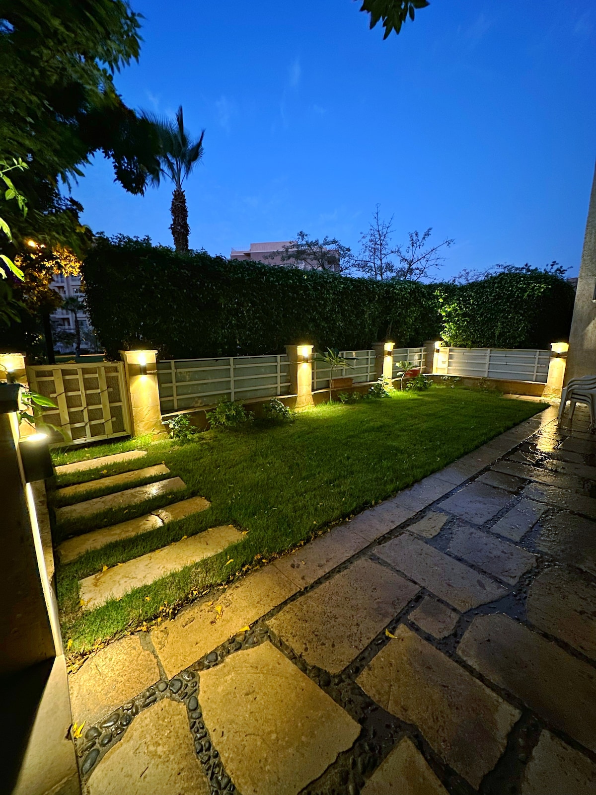 An ENTIRE APARTMENT with a back garden situated in a beautiful and green area in a peacefully integrated community fulfilling all residents' needs. Rooms are newly furnished, air conditioned, smart T.V. and all amenities you might need, super CLEAN and QUIET. The apartment is 25 minutes from Cairo intInternational Airport. coffee shops, restaurants, supermarkets, and pharmacies are all nearby. Hotel standard quality with home like comfort offered with a REASONABLE PRICED.