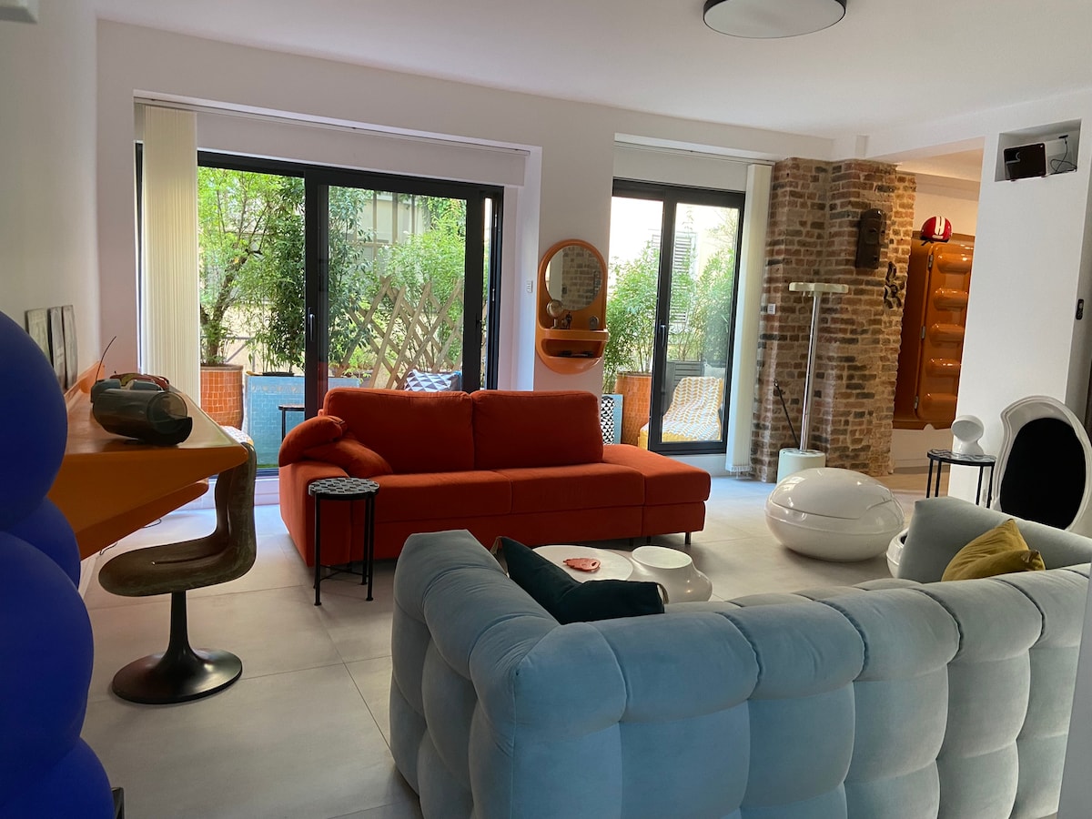 As a food lover, I have created a very personal and unique space for fellow foodies. Located in one of the hippest parts of Paris, my well-equipped kitchen includes a 3m long dining table that seats up to 12 people. The apartment has many original features with a private terrace, bedroom with a double sofa bed, and an original small retro bathroom. While the kitchen is very well equipped all mother comforts are kept to a minimum.