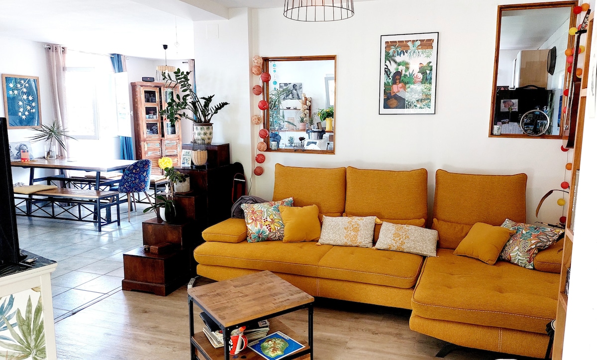 Charmante maison idéalement située pour vos visites touristiques dans le sud. Profitez de la plage, de la montagne, du volcan,du parc des palmiers …. À proximité des grands axes routiers, des restaurants, avec un arrêt de bus à moins de trois minutes. Ouvert sur une terrasse spacieuse fleurie, petit jardin avec barbecue, deux places de parking disponibles dans un quartier calme .