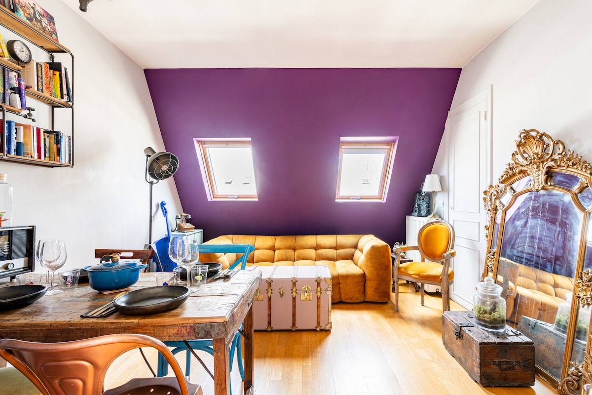 Experience the romance of Paris from this charming duplex apartment, perched above the rooftops on the historic Montmartre hill. Built in 1885, this unique and sunny home offers a truly authentic Parisian stay. On the 5th floor, no elevator--but the FAIRYTALE VIEW makes up for it! ★Located on a quiet side street, this apartment is your key to living the real life of a Parisian in Montmartre!