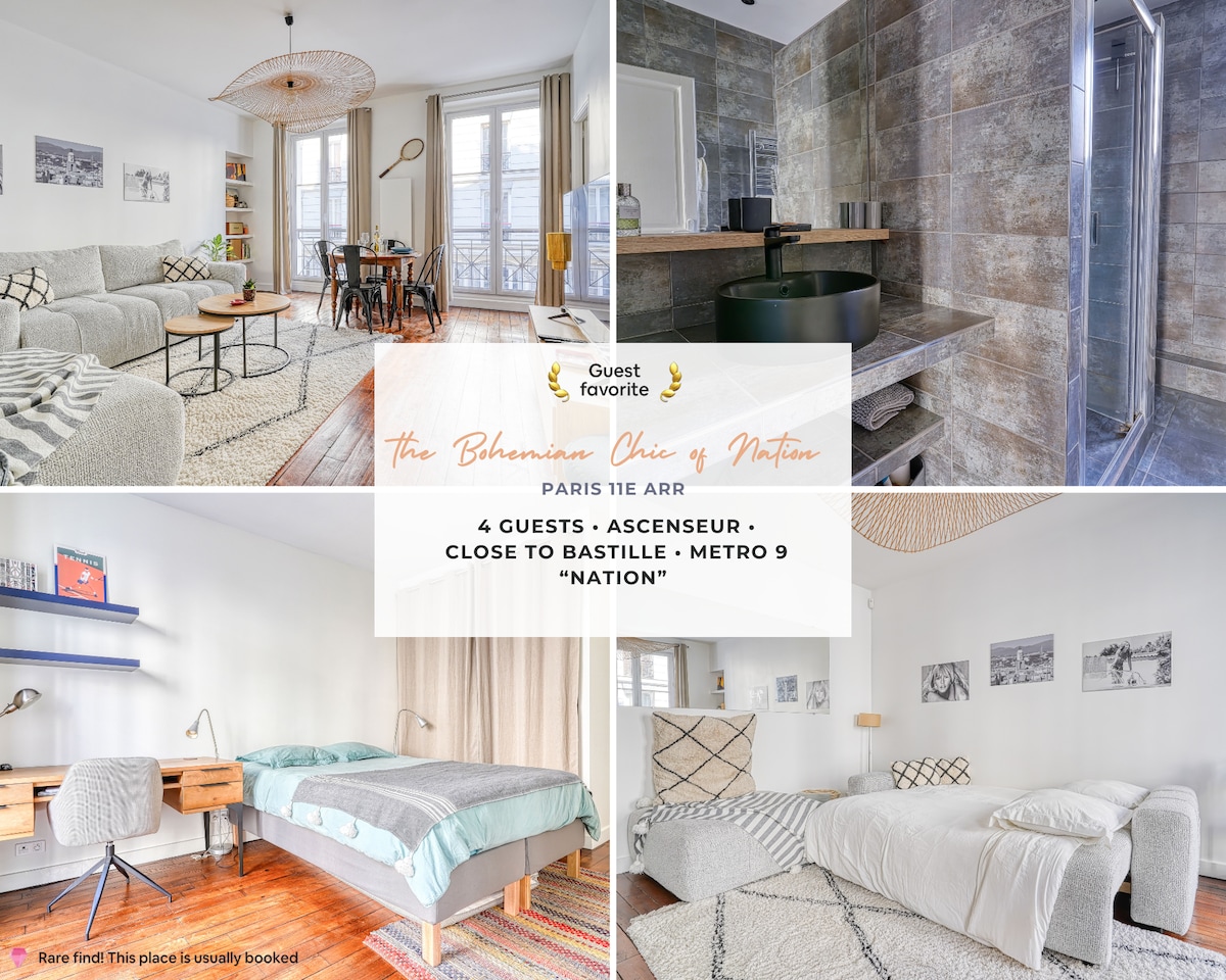 Profitez d'un logement classé trois étoiles, élégant et central, entièrement refait à neuf, lumineux et spacieux, à 20 mètres de la place de la bastille, au cœur de Paris, à 3 minutes à pied du marais. ce quartier est très bien desservi. Sa localisation centrale, ces commerces, ces restaurants et ces cinémas. Transports en communs aux pieds de l’immeuble ( métro, bus et taxis) des places de parking payantes sont disponibles dans la contre-allée en bas de l’immeuble.