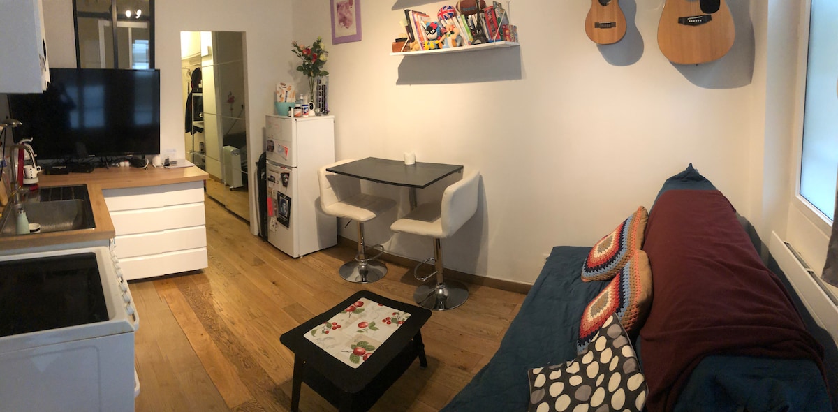 Cosy studio (27 sqm) in an lively and cosmopolite neighborhood located in the north center of Paris, in a building from 18th century. The place is quiet as the studio is on the courtyard side, on the 1st floor (2nd floor for US) Description : - living area with couch, - open kitchen - bed area - separate bathroom with large shower and toilet Towels are provided but not replaced during the stay Only one duvet/blanket is provided Body gel and shampoo not provided