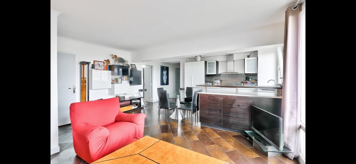 Warm, very bright 135m2 big apartment with terrace and breathtaking panoramic view over Paris on the 26 floors of a prestigious residence on the banks of the Seine, 10 minutes from the Champs Elysees and at the gateway to the La Defense business district. Residential area close to all shops. I do not accept any form of party! I offer an optional "ROMANCE PACKAGE" who comes with petals of roses, candles placed on a heart shape on the bed and a good bottle of champagne to SURPRISE your love one!