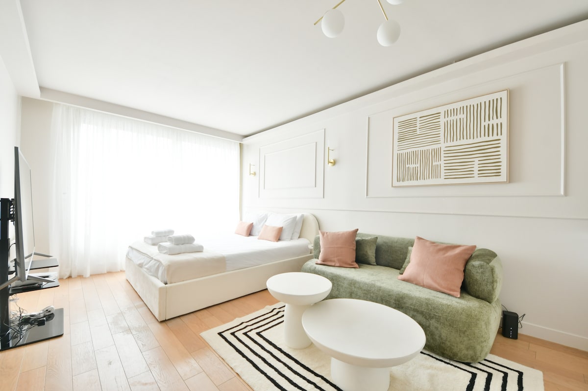 Newly refurbished by a designer, this chic and vibrant studio offers a stylish Parisian stay next to the Champs-Élysées and Ternes. Featuring a queen-size bed, a comfy sofa, and a fully equipped kitchenette, it’s perfect for relaxing after a day in the city. The bathroom includes a modern shower. Enjoy fast broadband and Netflix. Set in a secure building and neighborhood, surrounded by excellent restaurants, bakeries, and shopping.