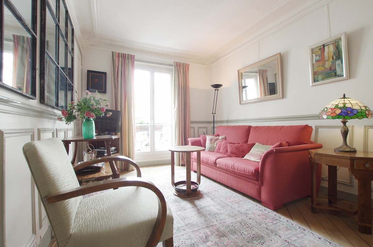 Charmant 50m2 refait entièrement à neuf mobilier de qualité vintage, le charme de l'ancien parquet,moulures, cheminées, carrelage. Dans un immeuble très calme et tranquille à 5 minutes à pied de Paris sur la ligne 14 la plus rapide, accès direct gare de Lyon et les axes touristiques de Paris, aéroport d'orly. Cuisine moderne entièrement équipée . Wifi haut débit 160 chaînes de TV. Grand canapé lit largeur 160 cm