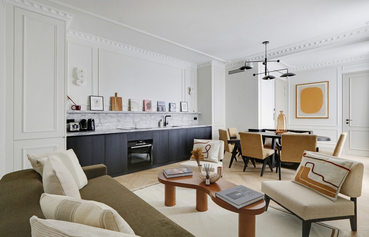 Stay in an exceptional apartment in the heart of Paris's prestigious 8ᵉ arrondissement, on Boulevard Haussmann. Imagined and decorated by the architects of The Lander, this elegant 50 sqm apartment embodies Parisian refinement and offers an authentic experience for 4 people. On the 5ᵉ floor with elevator, it guarantees a peaceful, bright atmosphere. We offer a daily cleaning service to ensure a refined atmosphere throughout your stay.