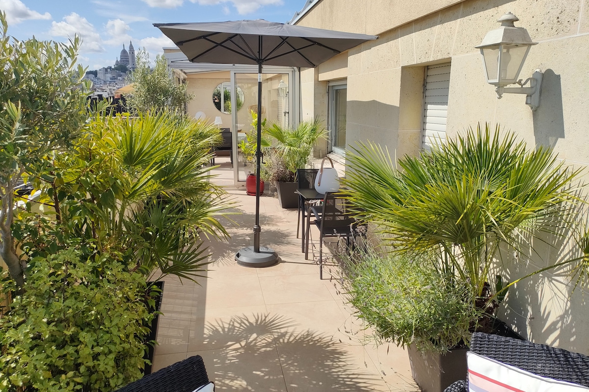 现代公寓,俯瞰Sacré-Cœur的露台