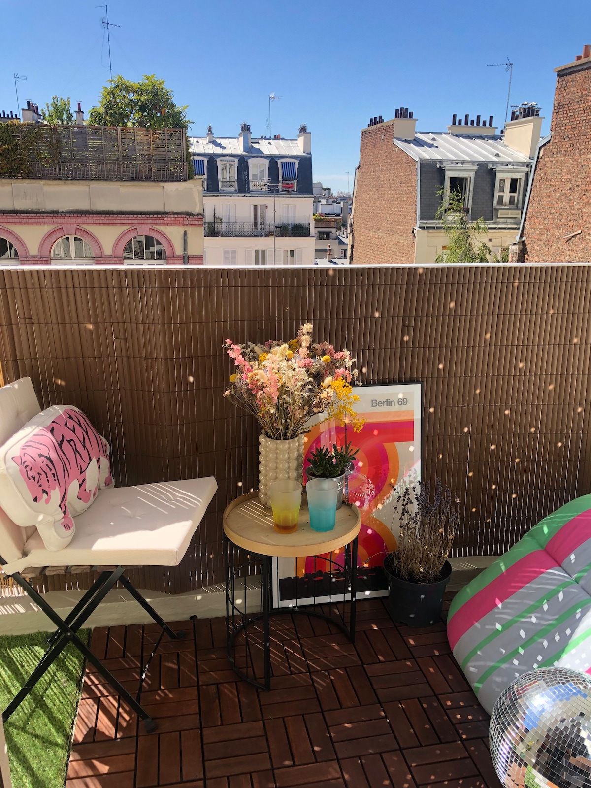 Notre appartement est unique, avec une décoration pointue et une vue imprenable sur tout Paris depuis la terrasse donnant notamment directement sur le Sacré-Coeur. Le grand salon et la salle à manger tout en baie vitrée sont plein sud et hyper lumineux toute la journée. Tous les meubles et les matériaux ont été réfléchis pour en faire un espace extremement chaleureux et apaisant.