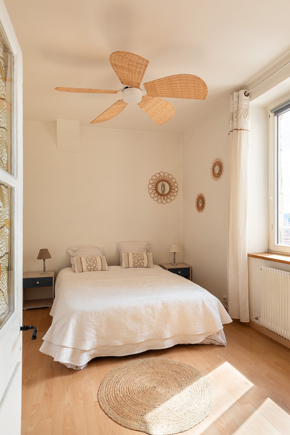 Spacious and bright loft canut (which in the 19th century housed silk weavers and their imposing looms, which are now part of Lyon's heritage with its 4-meter ceiling height.) With a surface area of 70m² plus a 20m² mezzanine in the heart of the village district of Lyon Croix Rousse, with exposed beams and stones, without vis-à-vis, in absolute calm with a breathtaking view of Lyon. 15 mins walk from the parc de la tête d'or and its lake.