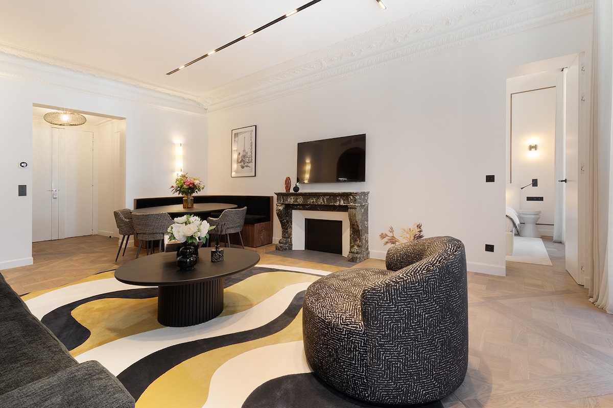 C’est une suite de grand luxe au coeur de Paris et dans un calme absolu ! Entièrement rénové avec niveau de qualité exceptionnel et un grand souci du détail par des propriétaires amateurs d'art et exigeants. Avec 6 fenêtres en enfilade exposées Sud au 4ème étage sur un jardin l'appartement est très lumineux et incroyablement calme. Immeuble de prestige sécurisé avec gardien. Ascenseur, Climatisation centrale, rideaux stores, coffre fort, tous équipements nécessaires ! Meublé de Tourisme 4 *