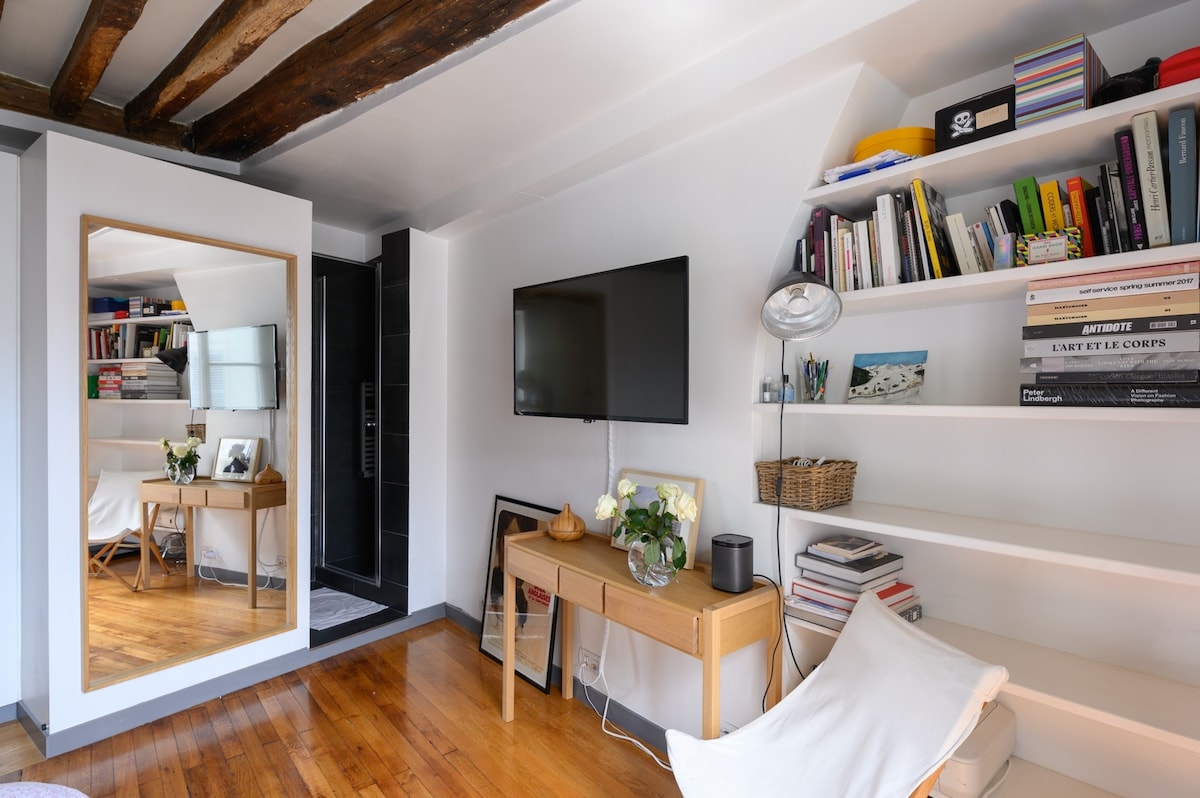 This chic one bedroom duplex is ideally located in the heart of the sought-after Rive Gauche/St. Germain neighborhood. The lively and cultivated Left Bank district boasts some of city’s finest shopping, dining and culture. Here is where you’ll find hip one-of-a-kind boutiques to high-end designer fashion, antique galleries (Carre des Antiquaires), as well as many modern-classic design shops. An array of delightful culinary offerings and dining experiences at every turn make this arrondissement quintessential Paris at its very best! The recently opened Beau Passage, adds yet another gourmet haven to the neighborhood. We are situated within a short walking distance to many of the main attractions of central Paris including: The Louvre, Musee D’Orsay, Musee Maillol, Seine River, Invalides, all of St. Germain and the Latin Quarter, Notre Dame Cathedral, Le Bon Marche department store, Cafe Flore, Cafe Deux Magots and more.