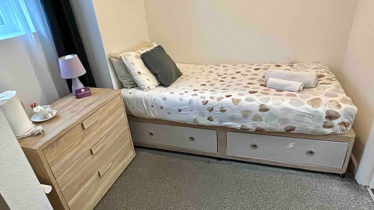 At less than 400 yards from Southampton Central Train Station, you will be a short walk / taxi ride from everything the city has to offer. 1 guaranteed free parking space. Boasting 2 bedrooms, one with a double bed, one with a single and a living space complete with sofa bed, will comfortably sleep 4 people. Make yourselves at home in the kitchen, equipped with all essential cooking appliances, or explore the bars and restaurants of the town. Recommendations can be given!