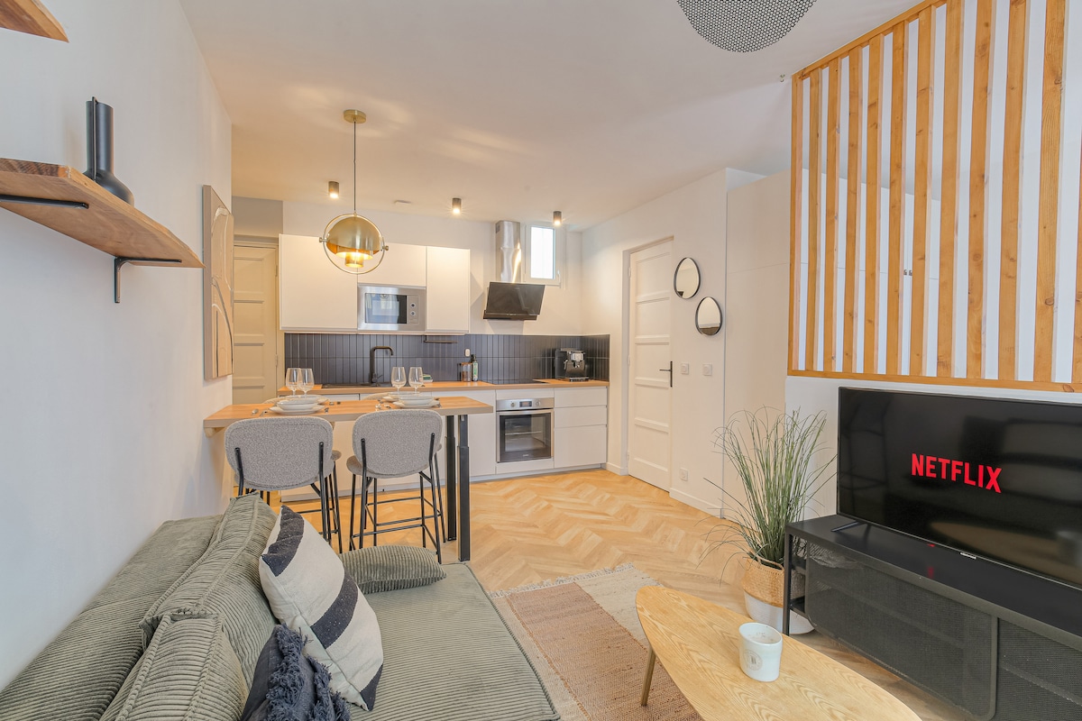 🌟 Charmant studio idéal pour une escapade. Posez vos valises dans ce studio lumineux, entièrement rénové, situé au 3ᵉ étage d’un immeuble ancien sécurisé (sans ascenseur). Accessible par un sas commun, le logement se trouve à deux pas de la gare de Perrache, avec tramway au pied de l’immeuble, vous serez idéalement situé pour découvrir les trésors de la ville : musées, balades, gastronomie. Un petit cocon calme et confortable, parfait pour profiter pleinement de votre séjour lyonnais.