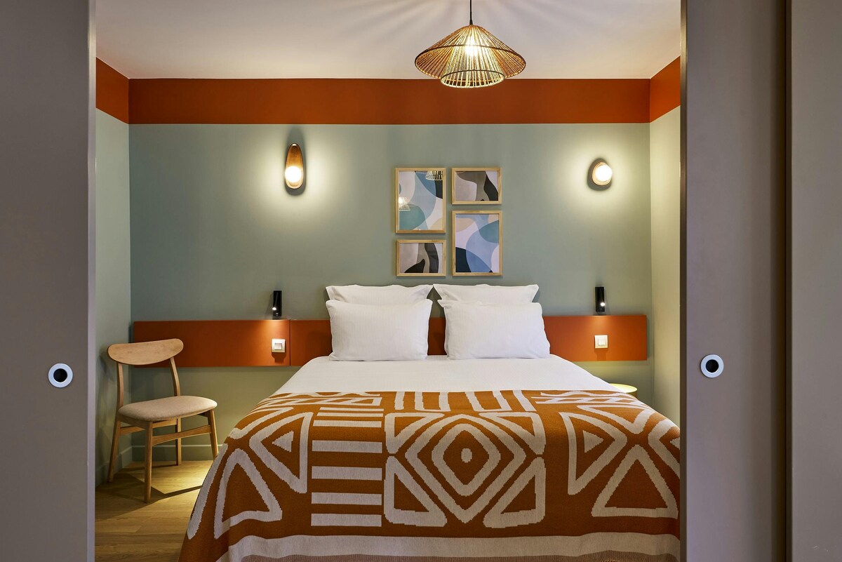 Treat yourself to a getaway for two in our Duo Room in Marseille. It features a large bed (160×200) or two separate beds (80×200), as well as a private bathroom for your comfort. 16sqm. Everything is designed to ensure you have a pleasant stay together!