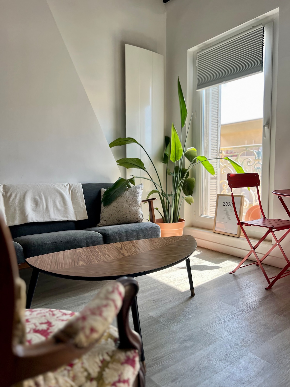 Appartement tout confort au style industriel, meublé de tourisme 3*, 50 m2 avec terrasse de 7m2, balcon filant de l'autre côté (appartement traversant est-ouest), situé dans le quartier des artistes bohèmes de Marseille, Notre Dame du Mont-Cours Julien. L'appartement est parfait pour les couples, les voyageurs en solo et les voyageurs d'affaires.
