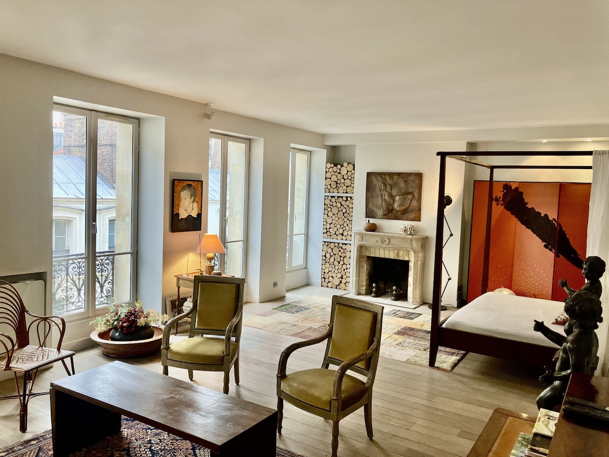 Boasting herringbone parquet flooring, fine furnishings and abundant natural light, this sophisticated 110m2 apartment offers a bright, elegant, warm and luxurious atmosphere. The apartment, with fireplace and moldings, combining charm, calm and comfort is located in one of the oldest passages in the historic center of Paris. This apartment has an official tourist accommodation operating license. So it's perfectly legal.