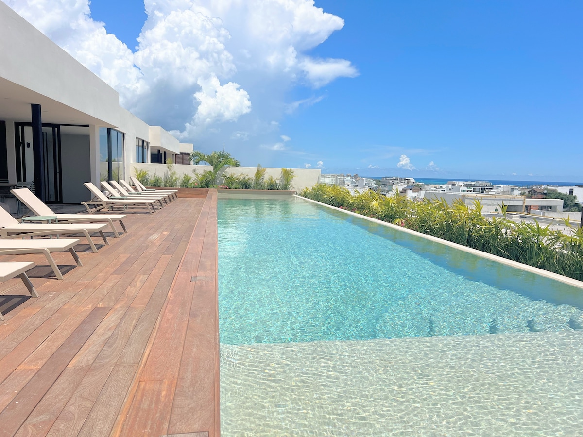 Ubicado a pocos pasos de la iconica Quinta Avenida pero sin estar afectado por el bullicioso de la zona, este hermoso apartamento es el lugar ideal para disfrutar la Riviera Maya. En tu estadía podrás tener acceso a la azotea del edificio con hermosa piscina, vistas al mar y a la isla de Cozumel. También tendrás acceso a la zona de coworking y gimnasio.