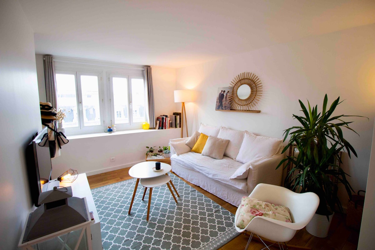 In the trendiest neighborhood of the city, elegant & cosy apartment with artistic vibe, close to the world famous Place des Vosges. 560sqf, under the roofs, charming and quiet, clean and tastefully decorated, the flat has a small terrace with trees and plants. The area couldn’t be safer, easy connection to everything. 2min from Picasso Museum, 5 from the waterside, 3 from Opera & many other interresting, hip, fashionable and iconic places. The wonderful Paris at your doorstep! Welcome home!