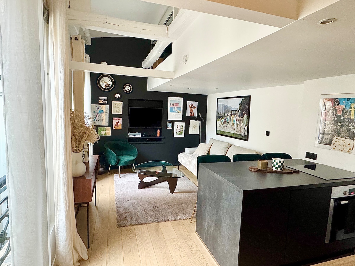 Located in the heart of the Marais, this top-floor apartment, accessible by elevator, offers a peaceful retreat in central Paris. With large windows on both sides, the space is flooded with natural light and provides unobstructed views, ensuring a calm and private atmosphere.