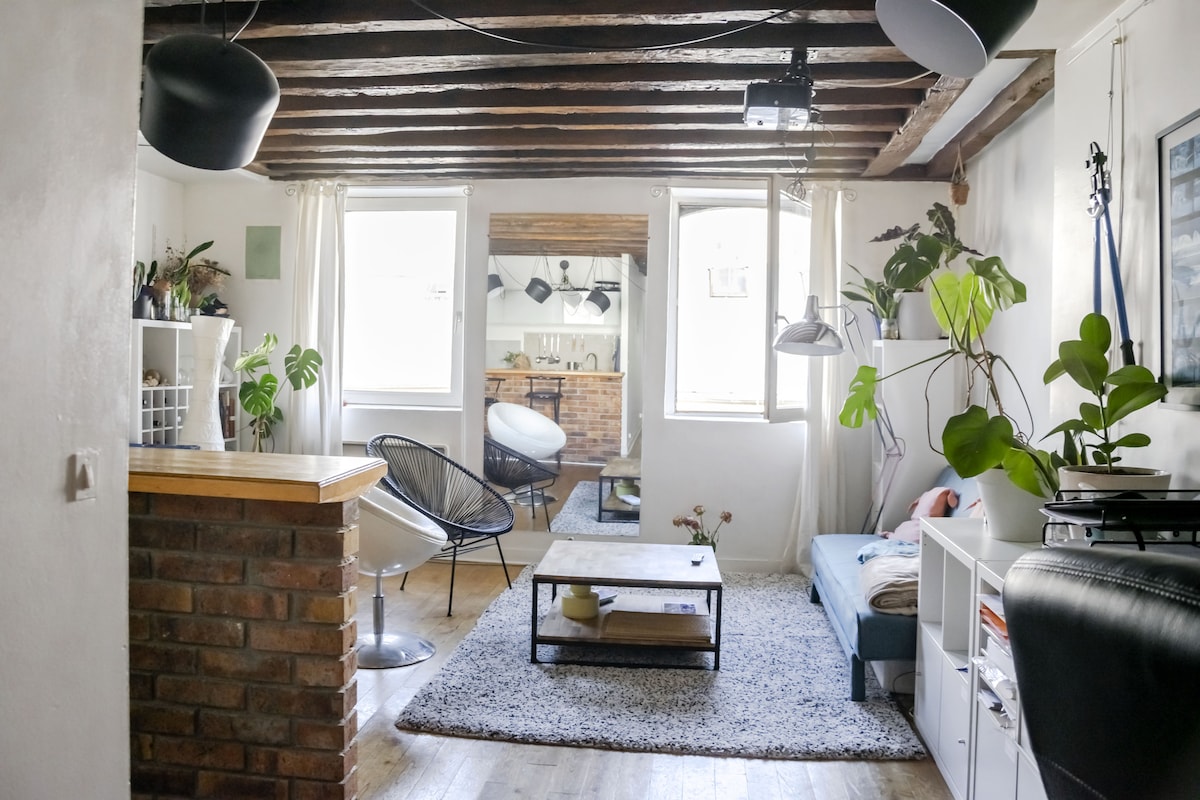 Cet appartement de caractère est situé dans le quartier historique et animé du Marais, au calme sur une jolie cour arborée. Vous serez séduits par son esprit maison de campagne, ses meubles, ses objets et œuvres d’art choisis avec soin. L’appartement est composé d’une grande pièce à vivre lumineuse sous une verrière, d'un petit salon, d'une chambre, d'une salle de bain et d'une douche. Ce lieu poétique, calme et lumineux, est le pied-à-terre idéal pour vos séjours parisiens !